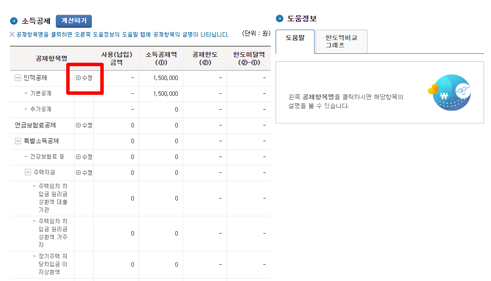 기본공제에 대한 상세설명이 필요하면 기본공제설명 펼치기를 통해 알아볼 수도 있습니다.