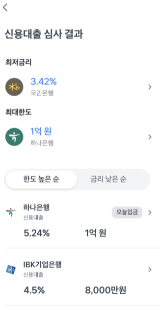 아래에서 여러 은행의 대출 금리 조건을 1분 만에 확인