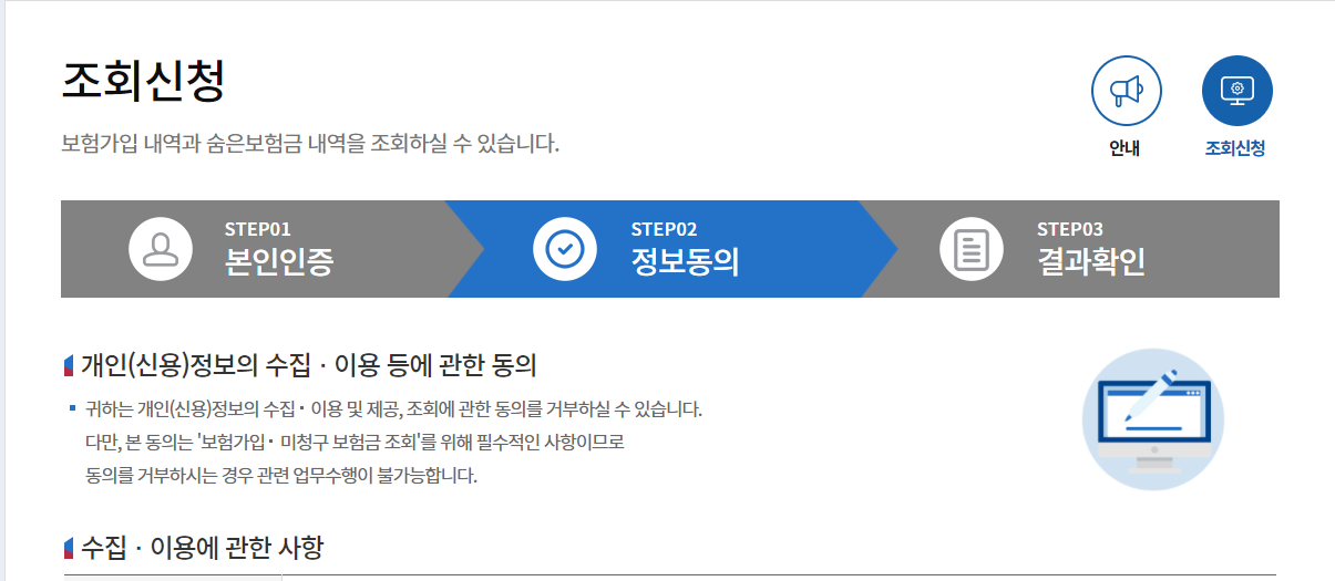 1. 해당 사이트에 접속해서 숨은 보험금 조회하기를 누르고 본인 인증 후에 조회가 가능합니다. 숨은 보험금이 있나 꼭 한번 조회해보세요. 숨은 보험금이 있다면 바로 청구도 가능합니다.
