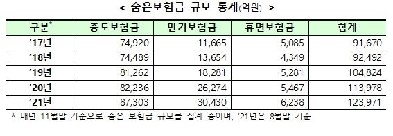 기존에는 숨은보험금을 찾기 위해서는 별도 지점 방문, 개별 보험회사 홈페이지 접속, 전화요청 등으로 청구를 진행해야 했다. 이로 인해 숨은 보험금 규모는 지속적으로 증가, 8월 기준 12조3971억원에 달하고 있다.