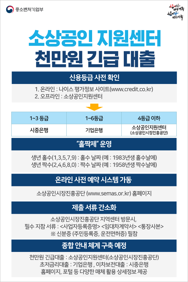 ※ ‘소진공 1천만원 직접대출’은 줄서기 등 불편을 해소하기 위해 홀짝제 시행(4.1일부터)