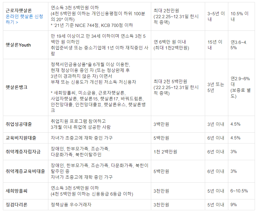 용도 : 생활자금 및 특정용도자금(교육·훈련비, 의료비, 주거비)