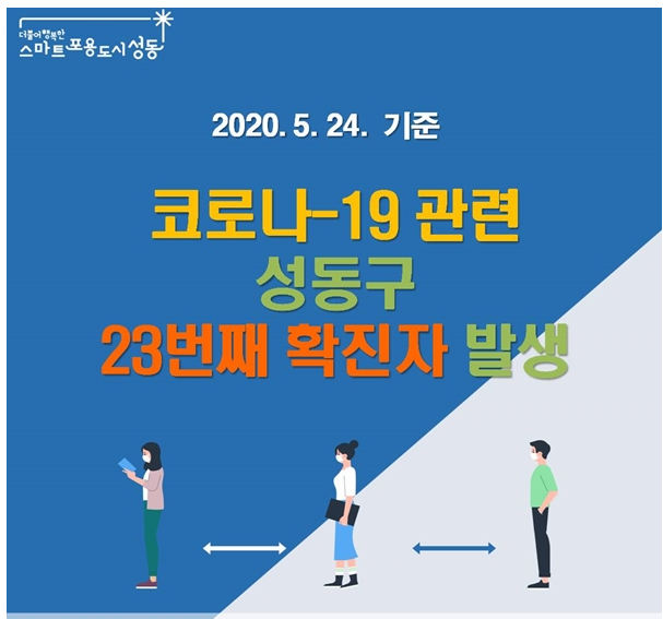 성동구에서 코로나19 감염증 23번 확진자가 발생했다. 서울시내에서도 확진자 계속해서 증가하고 있네요. 아래에서 확인하세요. 24일 성동구청은 공식 SNS를 통해 성수2가3동에 거주하고 있는 60대 직장인 A씨가 확진 판정을 받았다고 공지했다.