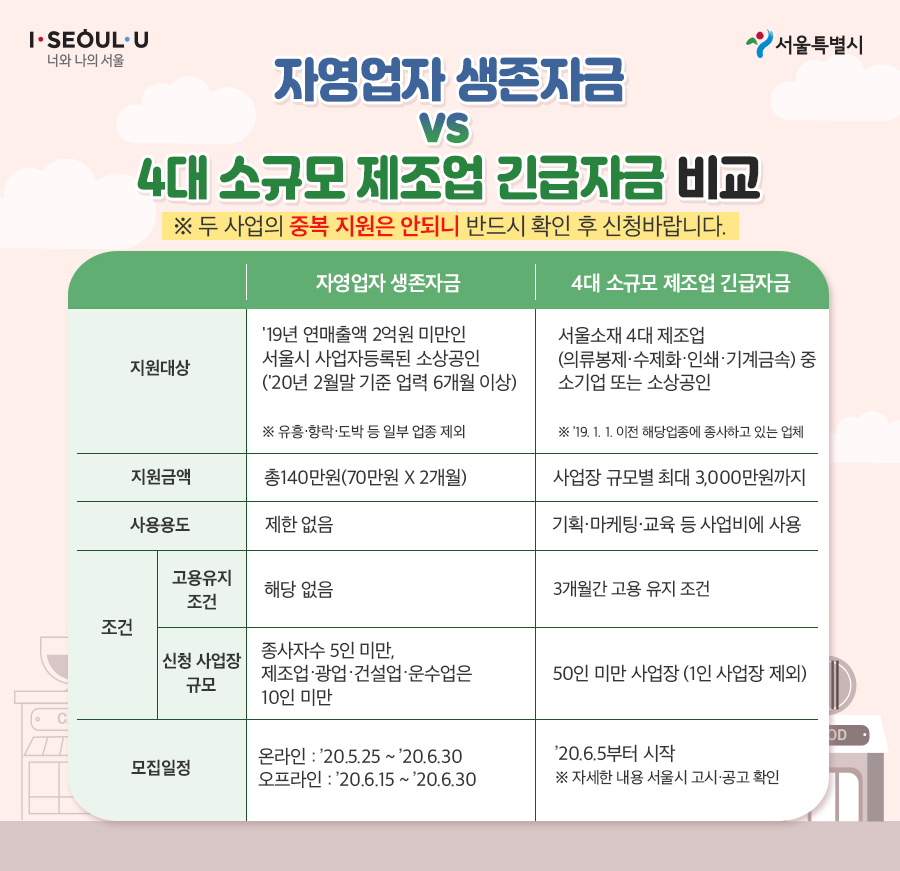 서울시 자영업자 생존자금 제외 업종 및 지원대상