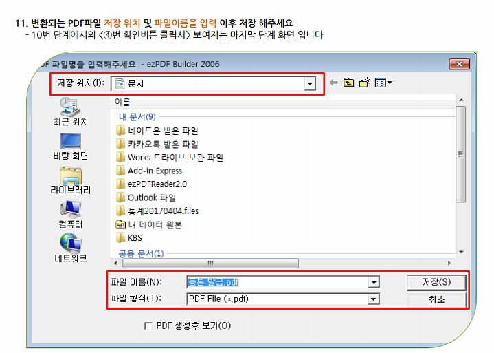 변환이 되었으니 저장위치 설정하고 파일이름 적고 저장해 주세요.