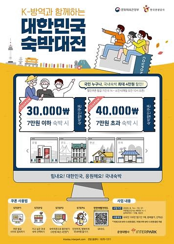 여기어때가 문화체육관광부, 한국관광공사와 함께 국내여행 활성화를 위한 '대한민국 숙박대전'을 주최한다. 할인 쿠폰과 함께 최저가 보상제도를 실시한다.여기어...