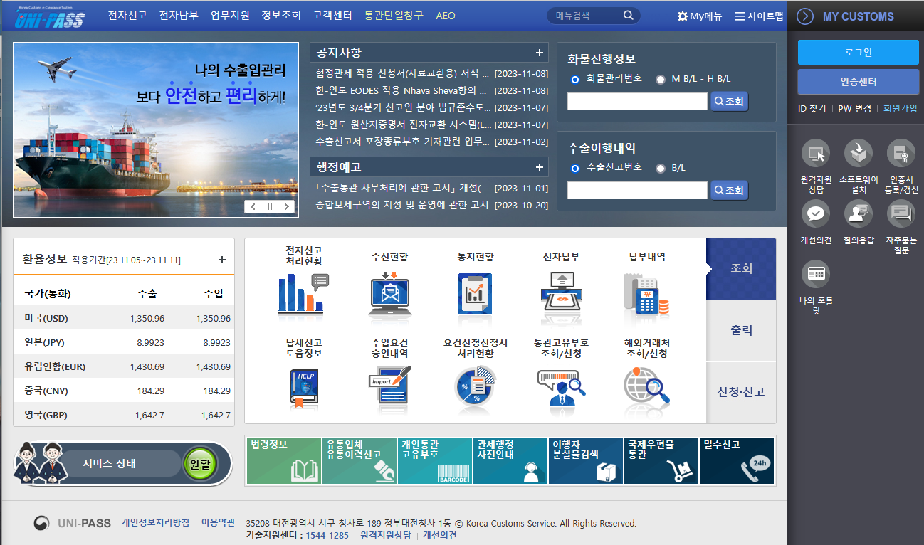 4.국가관세종합정보망 유니패스 사이트 조회