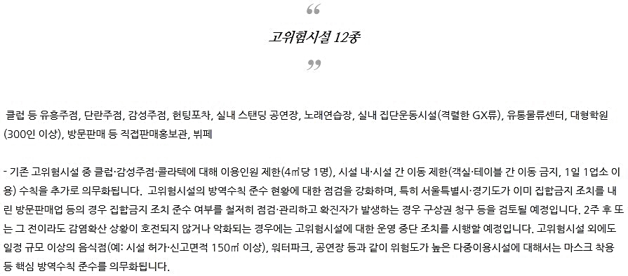 서울시는 서울의 인구 밀도가 높고 유동인구가 많아 n차 감염 확산 우려가 높은 점을 고려해 선제적 조치를 결정했다고 합니다. 빠르게 잘 했다고 생각합니다.