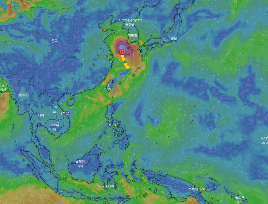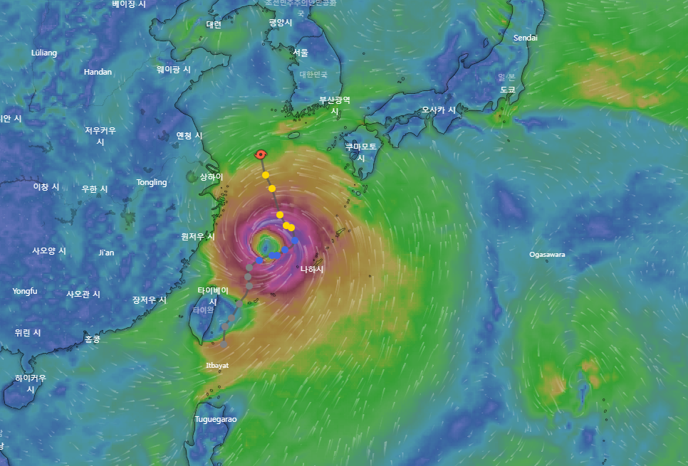 9월2일수요일쯤에는 거대한 태풍으로 변신하여 한반도 쪽으로 북상할 예정입니다.