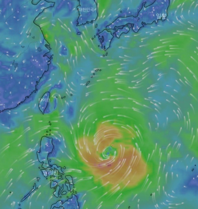 마닐라 앞바다 부근에서 한반도에 얼마나 큰피해를 주려고 몸은 키우고있는지 잘 지켜봐야 할 태풍입니다.