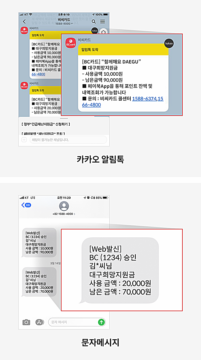 대구희망지원금 BC카드 비씨 사용내역 확인 방법