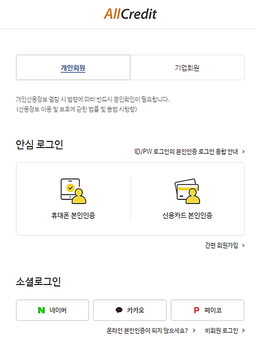 코리아크레딧뷰 KCB 와의 제휴를 통해