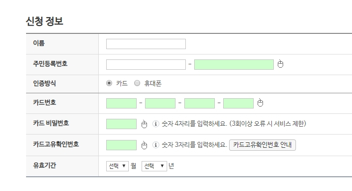 숫자 3자리를 입력하세요. 카드고유확인번호 안내 |