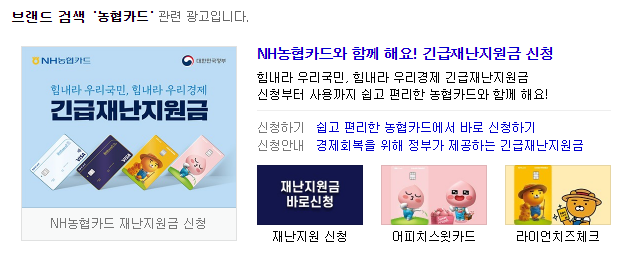 농협카드 국가 정부 긴급재난지원금 혜택 가맹점 사용처 신청 총정리